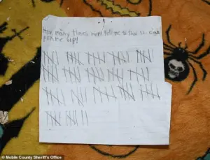 Among the most heartbreaking discoveries was a letter penned by the girl, titled ‘How many times mom tells me that she can’t pick me up!’ The page was filled with over 80 tally marks, each one a silent scream of desperation and abandonment.
