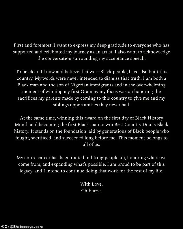 Shaboozey, whose real name is Collins Obinna Chibueze, had accepted the award for his collaboration with Jelly Roll on the song ‘Amen.’ In his speech, he declared, ‘Immigrants built this country, literally. So this is for them.’ The statement ignited a firestorm, with critics from both sides of the aisle accusing him of either ignoring the contributions of Black Americans or being ‘freaking dishonest’ about immigration policy. Kelly, who praised Shaboozey’s music but dismissed his political views, called his comments ‘blatantly dishonest’ and claimed that ‘illegal immigrants need to get the F out.’